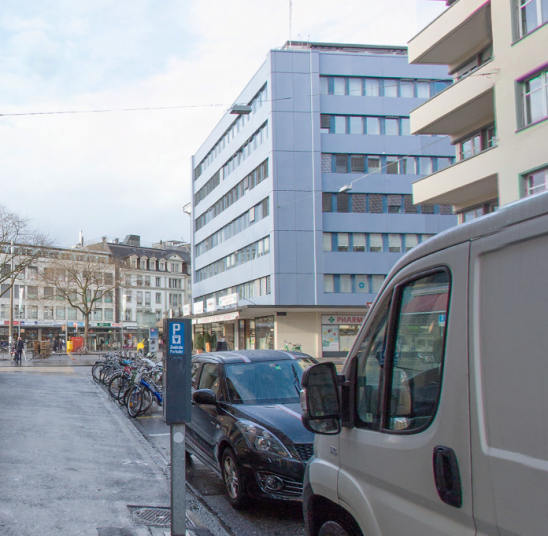 Mit dem Auto ab Bahnhofparking oder Kongresshaus-Parkplatz in ca. 5 Gehminuten